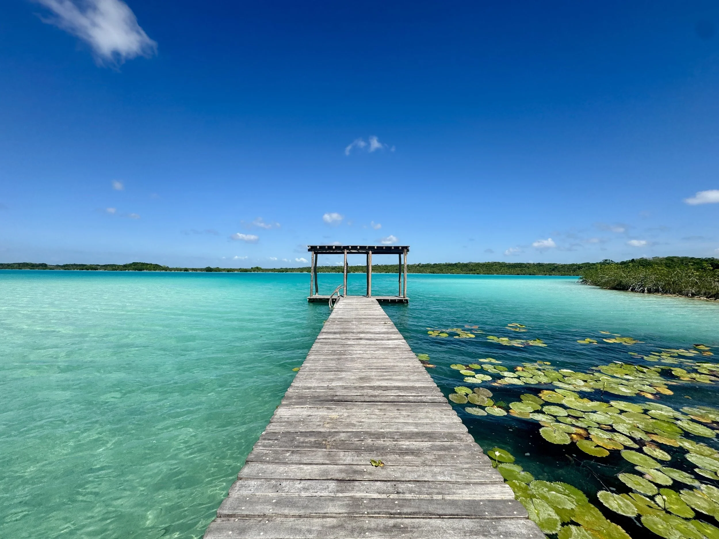 Explore the stunning hues of Bacalar Lagoon aboard a private sailing charter.